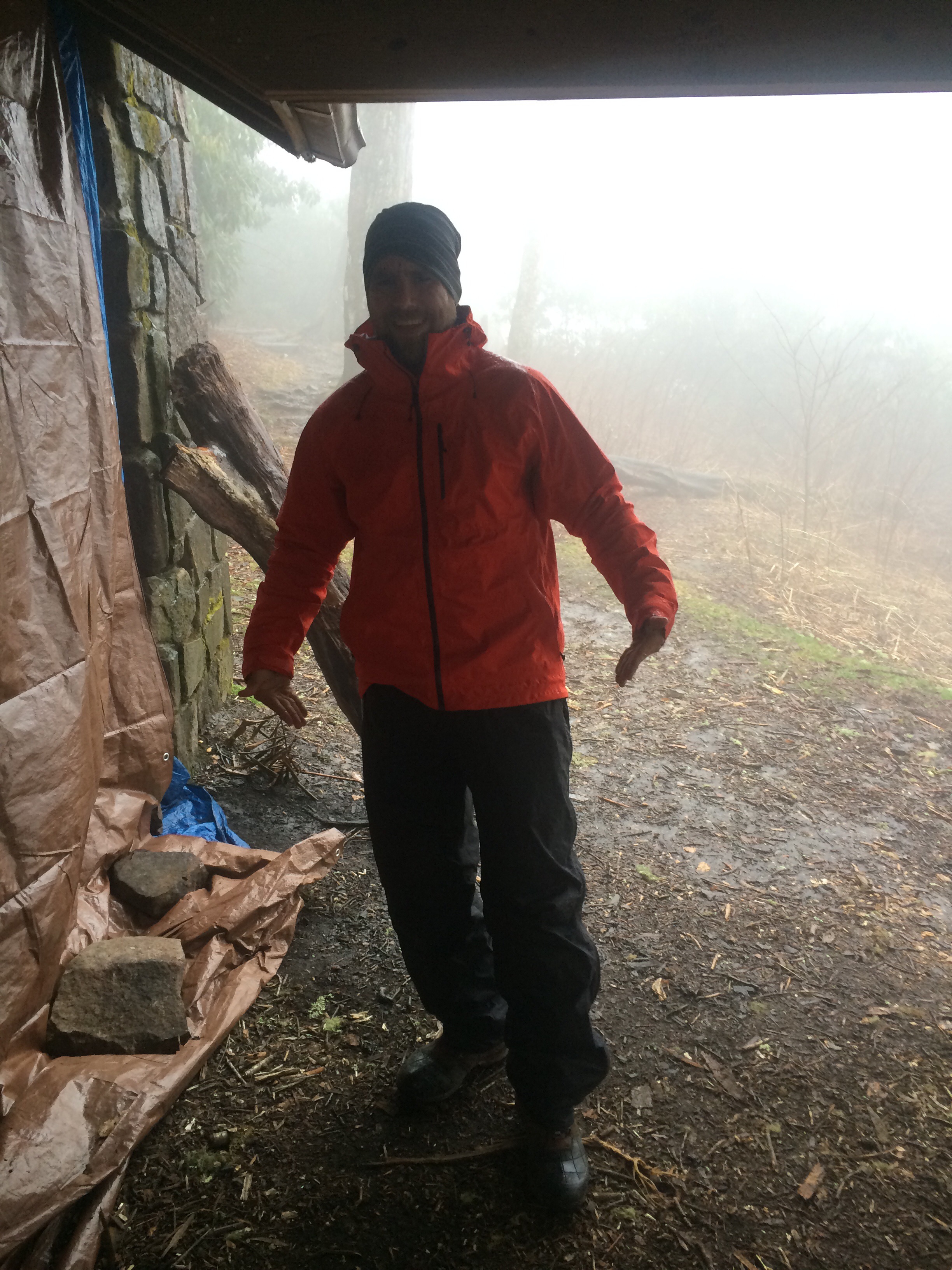 Well it had started raining 4am and it was still raining when we woke up again. It was funny since all of the weekend hikers had gotten up at the crack of dawn and bravely hiked out into the rain safe in the knowledge that warm beds awaited them that night. All of us through hikers, (with the exception of Raven Cloud who had to put in big miles that day), slept in and dawdled as much as possible hoping against hope that the rain would stop. After a while, unwilling to take a zero day in the shelter, Owl and I both suited up in our rain gear and reluctantly headed out. After the last mail drop we received I now had my own rain pants vs Owl’s wife’s pants, a fact that is much appreciated by all. I can actually button them up now and am no longer rocking the hipster hiker look.
