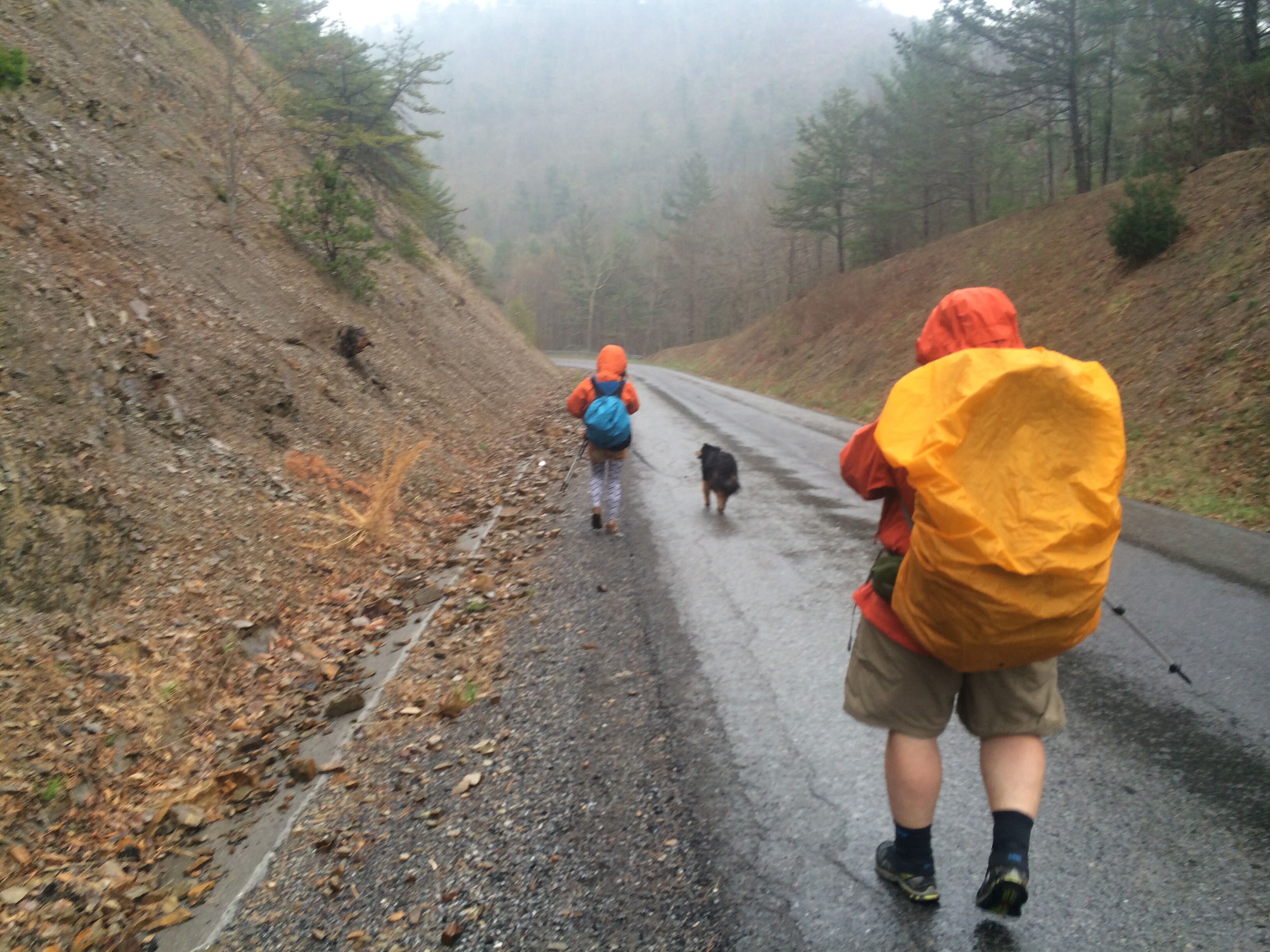 We split up so that Owl, Studebaker, Foxy, and myself would hike north, pick up the car, and then pick up Wiki and Lorax who would be hiking the section ahead of us. By the time were dropped off at the trailhead it was drizzling pretty good so we donned all our rain gear and headed out. Studebaker warned us that she was slow and then promptly dashed off. Well, actually she just hiked at her normal speed but the results were the same. We didn’t see her again for the rest of our hike but periodically over the next thirty minutes Foxy would come running back, give us a quizzical look as if asking us what we were doing all the way back here, and then sprint back to Stude.