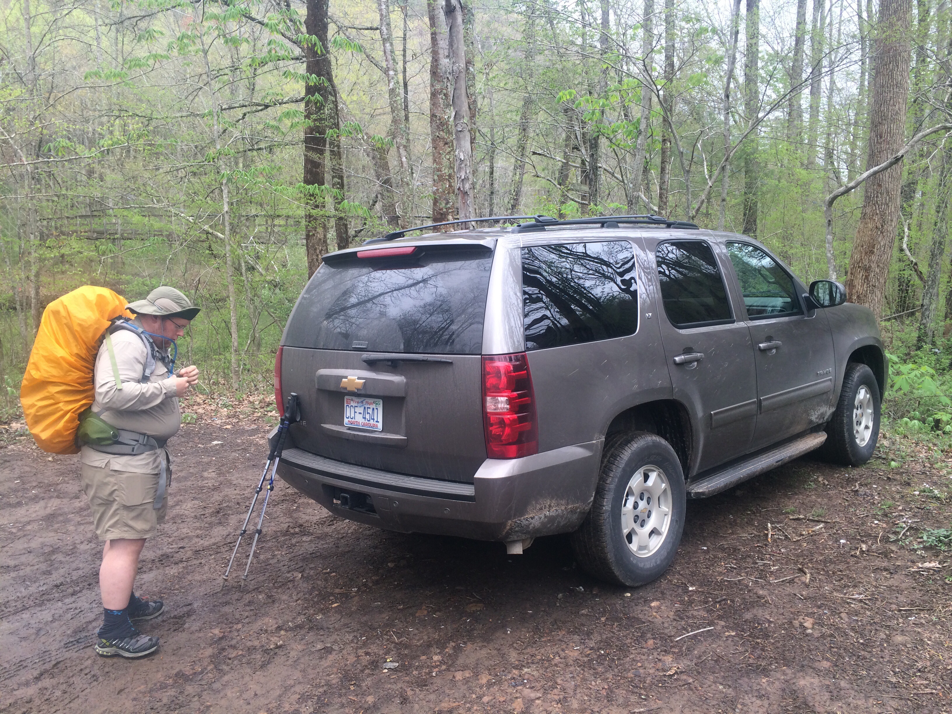 The logistics of the day quickly became complicated but the short story was that Owl, Wikipedia, Lorax, Studebaker, her dog Foxy, and myself rented a car from Enterprise so we could slack pack during the day while being able to enjoy hanging out in the college towns of Blacksburg and Radford in the evenings. In a piece of amazing good luck, the car rental place was out of mid sized cars so they upgraded us to a Chevy Tahoe instead. If you aren’t familiar with it, it’s the type of SUV that makes you say ‘Merica when you see it as the term land vehicle might be a better description. Despite the fact that you could fit an entire college football team into one of these things we still somehow managed to fill it up with all of our gear. There were more than a few exclamations stating how amazed we were that we lugged all of that stuff on our backs for the last three months instead.